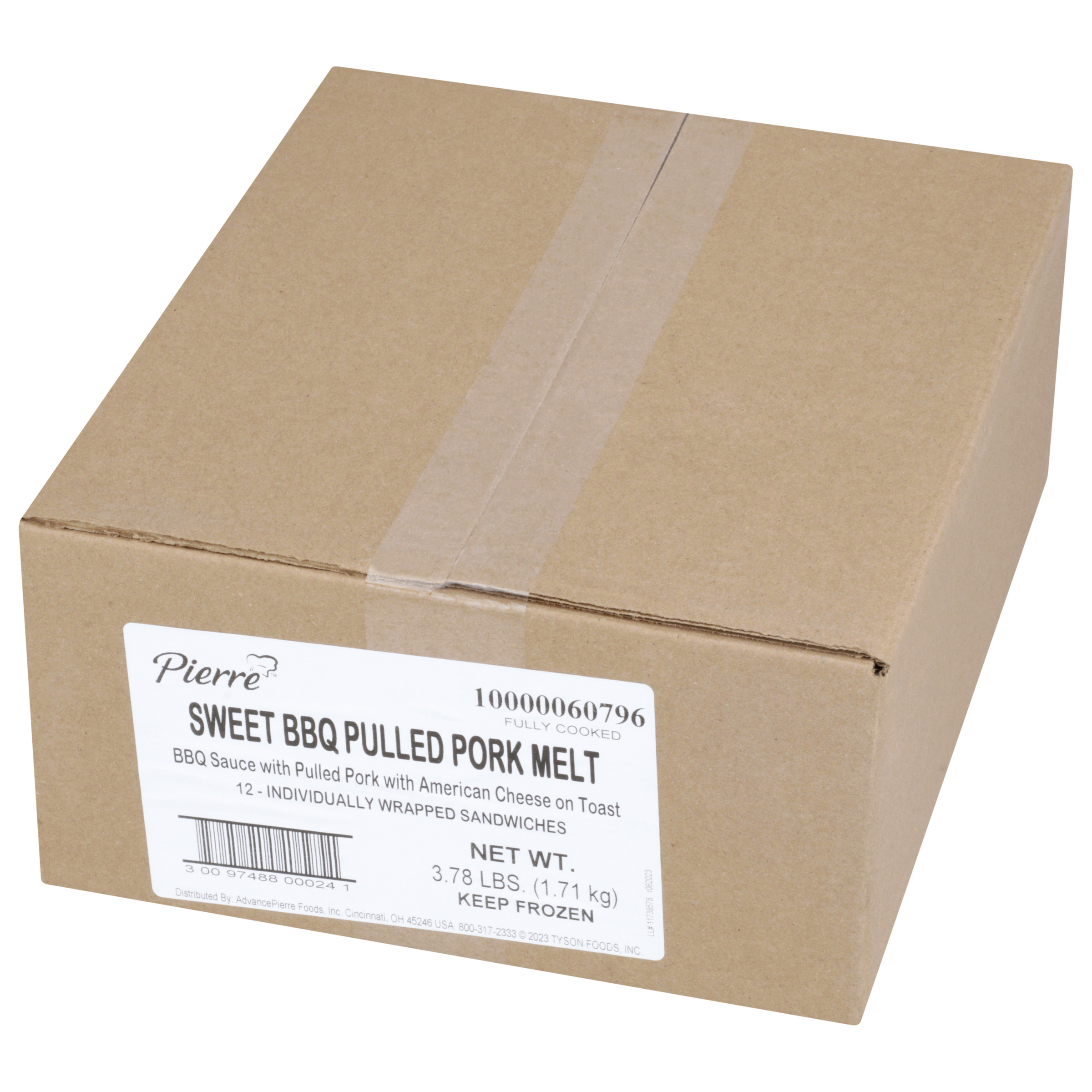 Precooked texas toast: enriched unbleached wheat flour (wheat flour, malted barley flour, ferrous sulfate, niacin, thiamine mononitrate, riboflavin, and folic acid), water, sugar, yeast, soybean oil and hydrogenated soybean oil, contains 2% or less of each of the following: salt, vital wheat gluten, monoglycerides, calcium stearoyl lactylate (csl), mono- and diglycerides, diacetyl tartaric acid esters of mono-diglycerides (datem), monocalcium phosphate, ammonium sulfate, ascorbic acid (vitamin c), enzymes (contains wheat), calcium peroxide, l-cysteine hydrochloride, propionic acid, phosphoric acid, soy lecithin, vegetable oil, mineral oil, calcium propionate (preservative), natural and artificial flavor, and beta carotene (color). bbq sauce with pulled pork [fully cooked pulled pork, water, ketchup(tomato concentrate made from red ripe tomatoes, distilled vinegar, high fructose corn syrup, corn syrup, salt, spice, onion powder, natural flavoring), tomato sauce(tomato concentrate [water, tomato paste], water, salt, citric acid, red bell pepper powder, dextrose, spices, natural flavor), brown sugar, sweet relish(cucumbers, high fructose corn syrup, vinegar, water, contains less than 2% of salt, calcium chloride, xanthan gum, sodium benzoate (preservative), polysorbate 80, alum, natural flavor, turmeric extract (color)), vinegar, sugar, molasses, spices, honey powder (sugar, honey), salt, gelatin, modified food starch, liquid smoke, soybean salad oil, garlic powder, new mexico chili powder(chili pepper, silicon dioxide [anti-caking agent], ethoxyquin [anti-oxidant]), sunrise chili pepper(chili pepper, spices, salt, garlic, silicon dioxide [anticaking agent], ethoxyquin [anti-oxidant]), onion powder, xanthan gum, natural butter sauce(modified corn starch, salt, whey solids, non-fat dry milk, maltodextrin, butter, sugar, buttermilk powder, natural butter flavor, xanthan gum, lactic acid, turmeric, annatto (for color)), sunflower lecithin], american cheese [milk, water, cream, contains 2% or less of cheese culture, citric acid, color added, enzymes, potassium citrate, salt, sodium citrate, sorbic acid (preservative), soy lecithin, tetrasodium pyrophosphate].