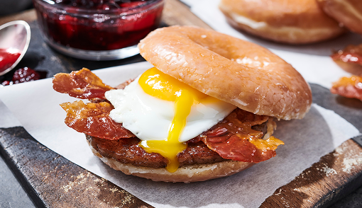 Or, when a customer just needs something indulgent, whether to feel better on a tough day or celebrate a great one, Cameron recommends this Donut Breakfast Sandwich, featuring Jimmy Dean® Fully Cooked Pork Sausage Patties and Jimmy Dean® Fully Cooked Hickory Smoked Regular Bacon Slices, with egg and melty cheese slices, lusciously layered in a tempting glazed donut. “It definitely does it for us with the perfect balance of sweet and salty—or as they say, ‘swalty,’ a profile that’s trending.”