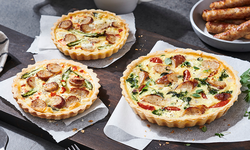 Another elevated option perfect for breakfast, brunch or anytime is this Breakfast Tart that uses fully cooked sausage links in an unexpected application featuring creamy goat cheese, tender asparagus and a flaky pastry crust.
